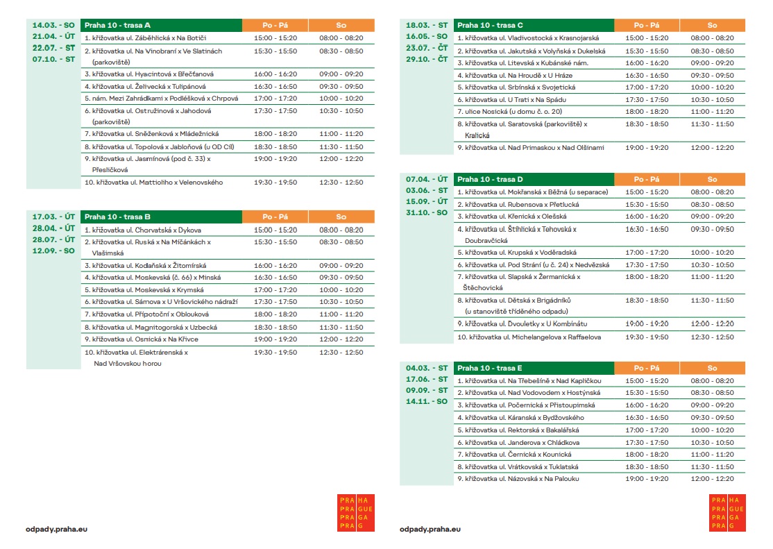 ROZPIS MOBILNÍHO SBĚRU V PRAZE 10 PRO ROK 2026: